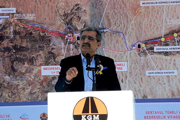 Ulaştırma, Denizcilik ve Haberleşme Bakanı Ahmet Arslan, Karaman-Mersi Karayolu üzerindeki Sertavul geçidine yapılacak olan Sertavul Tüneli ve Medreselik Viyadüğü’nün temel atma törenine katıldı.